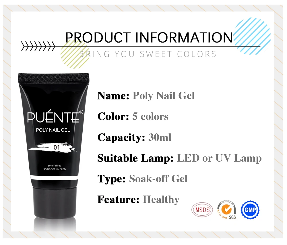 PUENTE 폴리 네일 젤 30ML 헤마 프리 아크릴 젤 핑거 익스텐션 반영구 패스트 빌더 하이브리드 바니시 UV 폴리 매니큐어