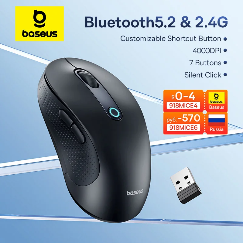Baseus 무선 블루투스 5.2 마우스, 인체공학적 7 개 음소거 버튼 마우스, 아이패드 맥북 태블릿 노트북 … 더 읽기